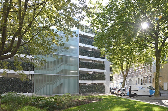 De renovatie van P-first is afgerond. In samenwerking met bouwbedrijf Groenewegen maakte Architecten van Mourik het ontwerp voor de renovatie van de parkeergarage, waarbij de gevel van de parkeergarage tot onderdeel werd gemaakt van de nieuw aan te leggen binnentuin.