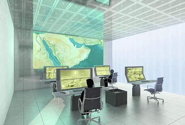 Het ontwerp van de Emergency Management Centre Koeweit biedt een werkruimte met een duidelijk zicht over de activiteiten, custom-built ergonomische meldkamertafels en plug-and-play systemen verborgen achter de naadloze afwerking van de wand, vloer en plafond, waardoor de bestreiding van calamiteiten optimaal ondersteund wordt: Alles onder controle.